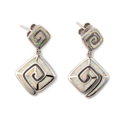 925 Sterling Silver Blue Opal Meander Earrings