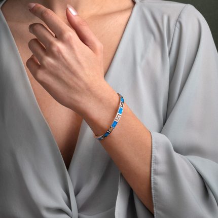 Greca Bangle Bracelet with Blue Opal stone – 925 Sterling Silver