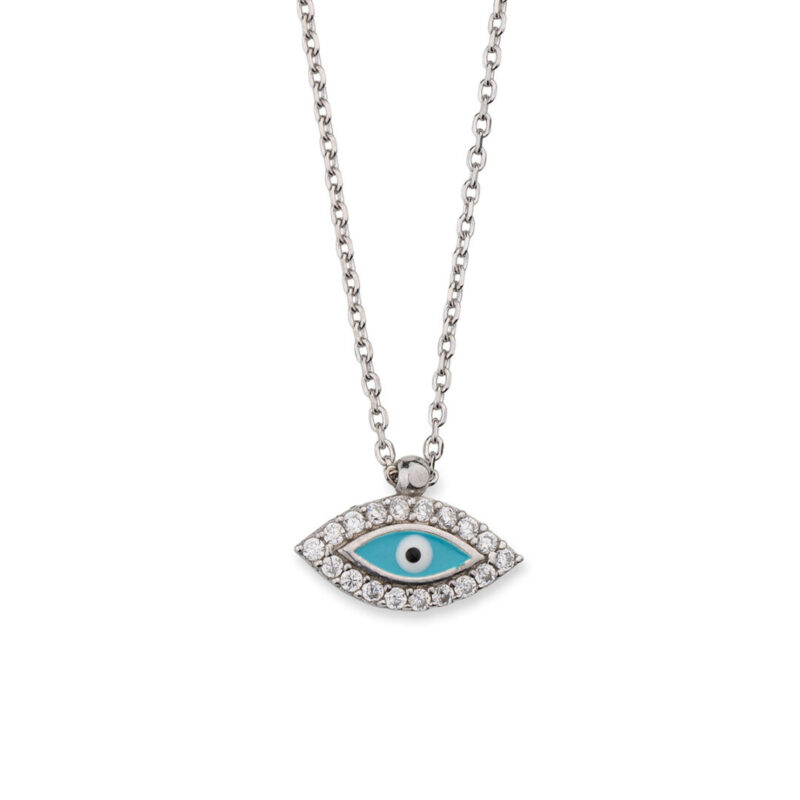 Κολιέ με Μάτι με Τυρκουάζ ή Μπλέ Σμάλτο – 925 Ασήμι