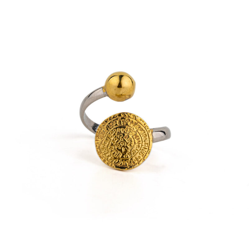 Δαχτυλίδι Ανοιχτό με Δίσκο της Φαιστού – Ασήμι 925 και Επιχρυσωμένο