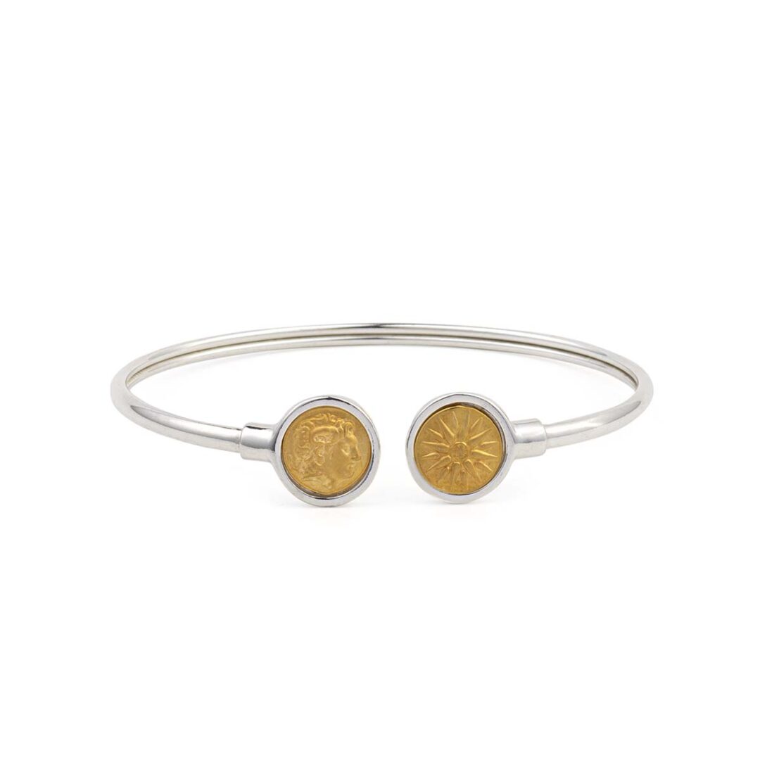 Ένα βραχιόλι εμπνευσμένο από το αρχαίο ελληνικό νόμισμα που απεικονίζει τον Μέγα Αλέξανδρο.