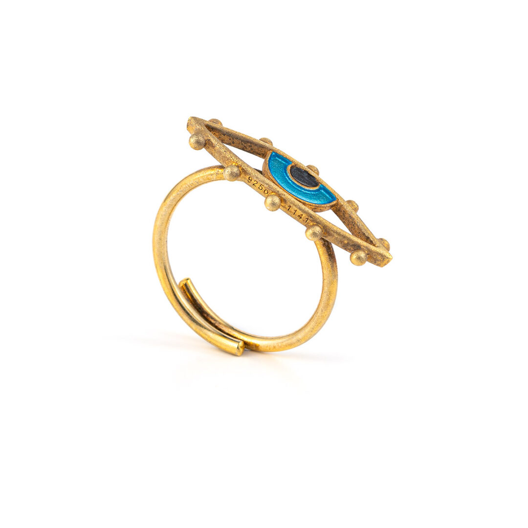 Ασημένιο Δαχτυλίδι Μάτι Επίχρυσο με Σμάλτο