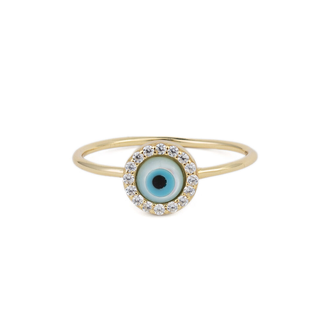 Ασημένιο Επίχρυσο Δαχτυλίδι Μάτι Με Ζιργκόν