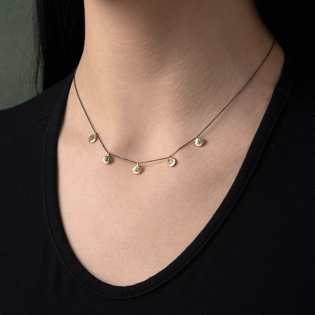 Ασημένιο Κολιέ με Ματάκι Χαραγμένο σε Δίσκους