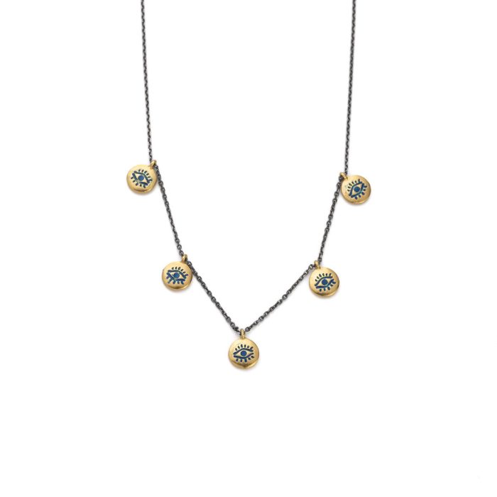 Κολιέ από ασήμι 925 επιχρυσωμένο, με αλυσίδα και κρεμαστά ματάκια