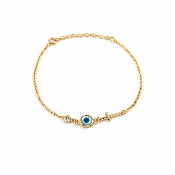 Βραχιόλι αλυσίδα ασήμι 925 επιχρυσωμένο Μάτι με σταυρό