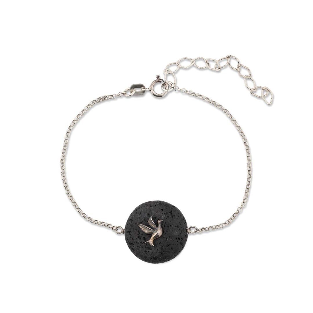 Βραχιόλι Αλυσίδα με Περιστέρι & Πέτρα Λάβας – Ασήμι 925⁰