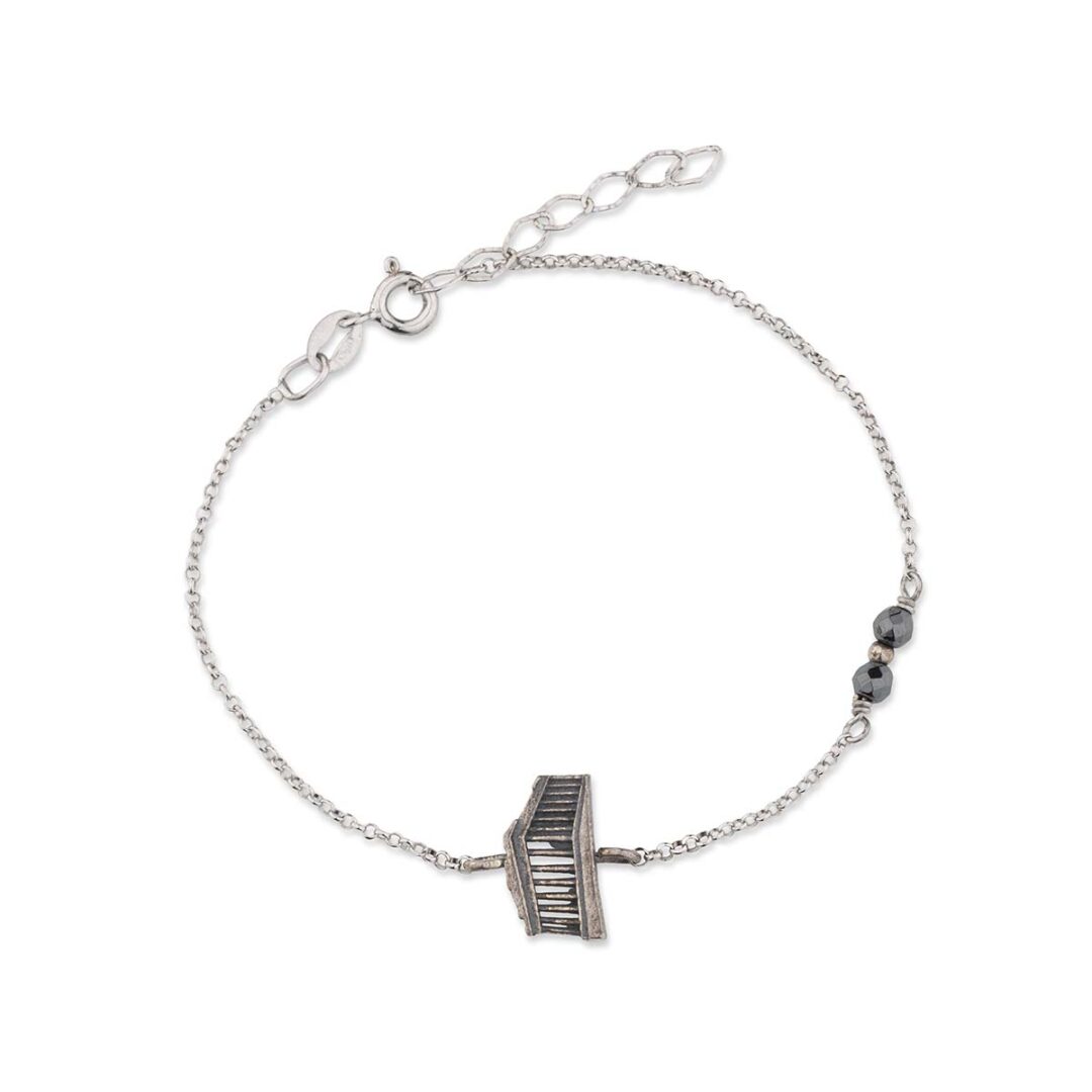 Ένα βραχιόλι εμπνευσμένο από τον Παρθενώνα, το εμβληματικό μνημείο της Ακρόπολης. Χτίστηκε προς τιμήν της θεάς Αθηνάς και αποτελεί το λαμπρότερο σύμβολο της Αθηναϊκής πολιτείας και της πολιτιστικής της κληρονομιάς.