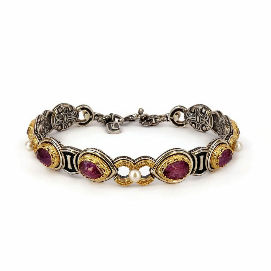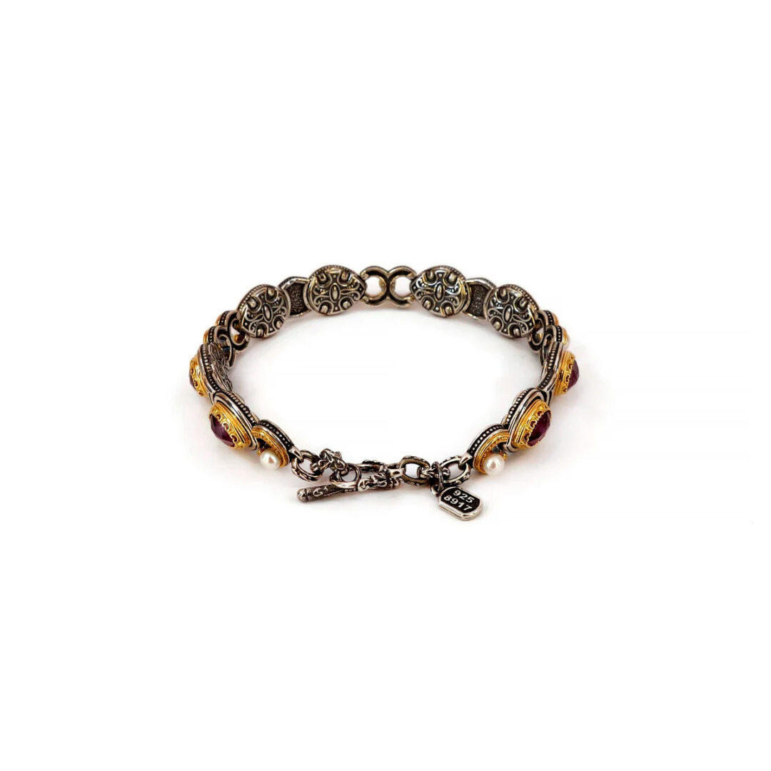 Βραχιόλι Βυζαντινό με Ρουμπίνι και Μαργαριτάρι – Ασήμι 925 Επιχρυσωμένο