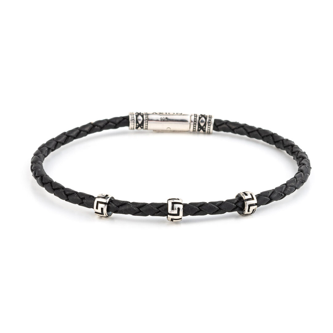 Βραχιόλι Δέρμα με Μαίανδρο – Ασήμι 925
