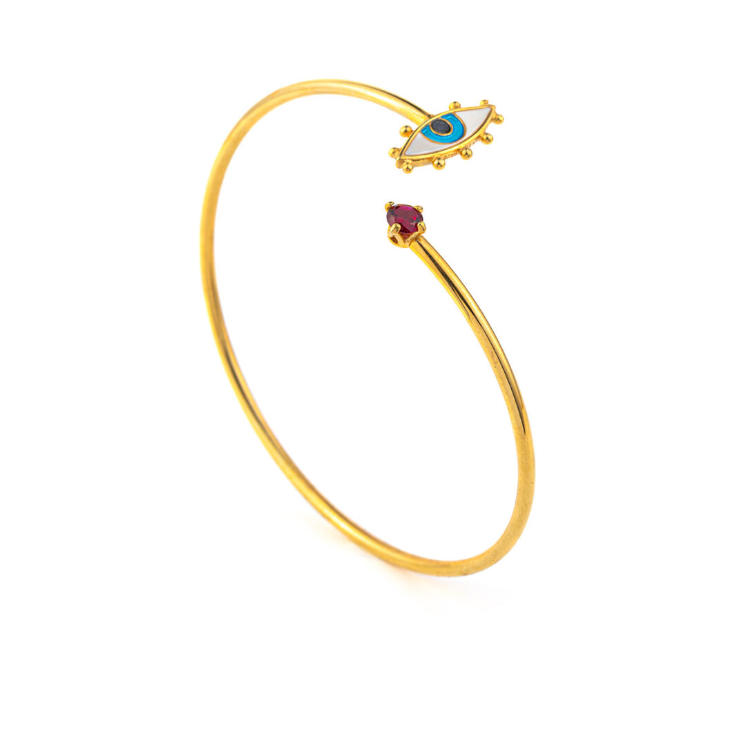 Βραχιόλι από ασήμι επιχρυσωμένο με ματάκι με σμάλτο στη μία άκρη και πέτρα στη άλλη.