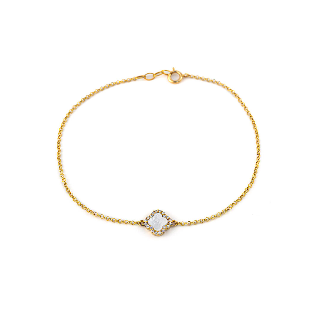 Βραχιολάκι αλυσίδα από ασήμι 925ο επιχρυσωμένο με σταυρό. Ο σταυρός είναι διακοσμημένος με λευκές πέτρες ζιργκόν.