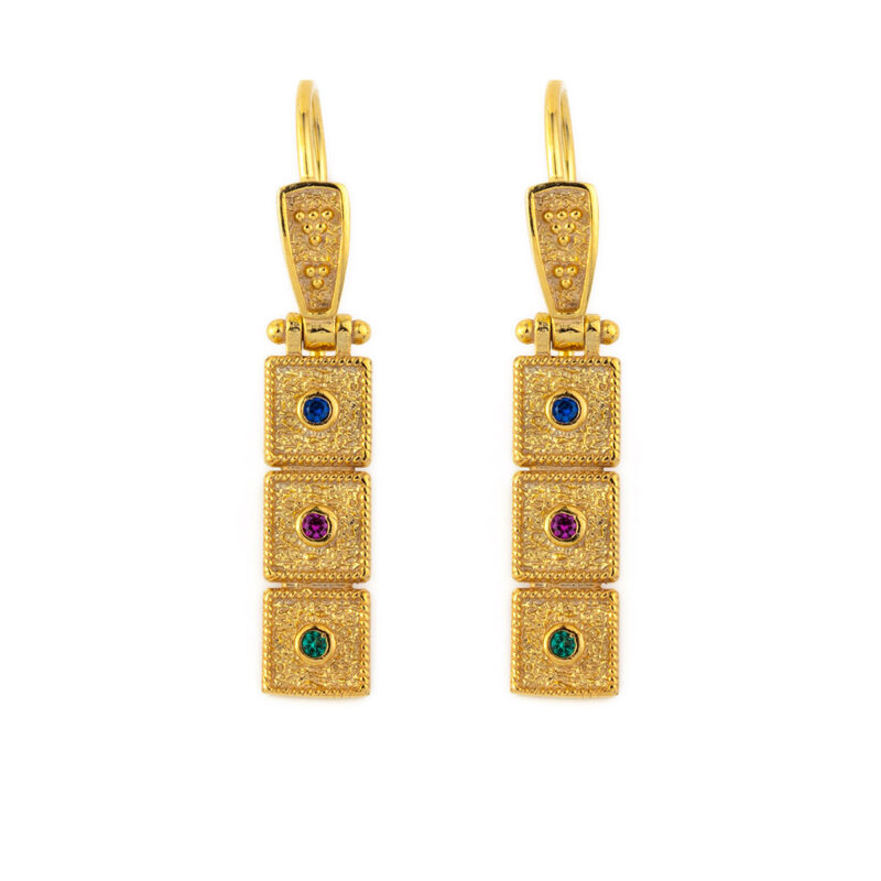 Βυζαντινά Σκουλαρίκια με κρύσταλλα Swarovski – Επιχρυσωμένο Ασήμι 925
