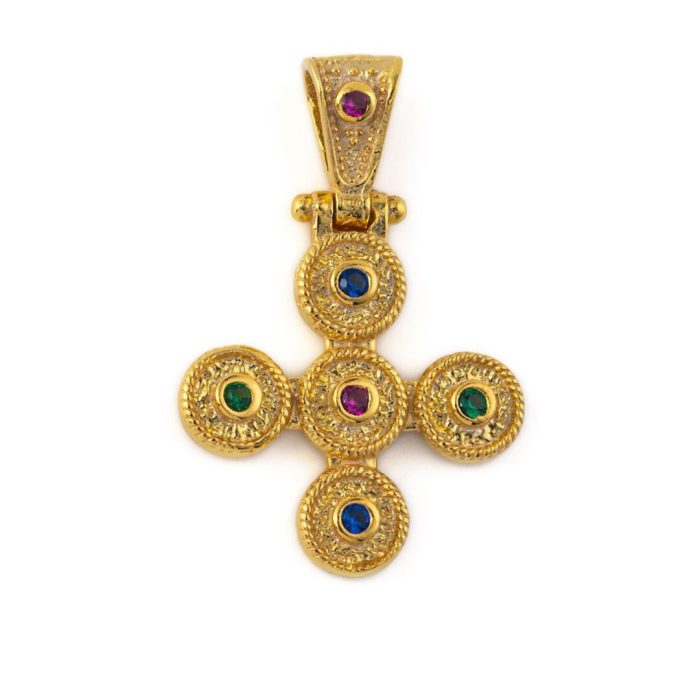 Βυζαντινός Σταυρός – Ασήμι 925 Επιχρυσωμένο με Ζιργκόν