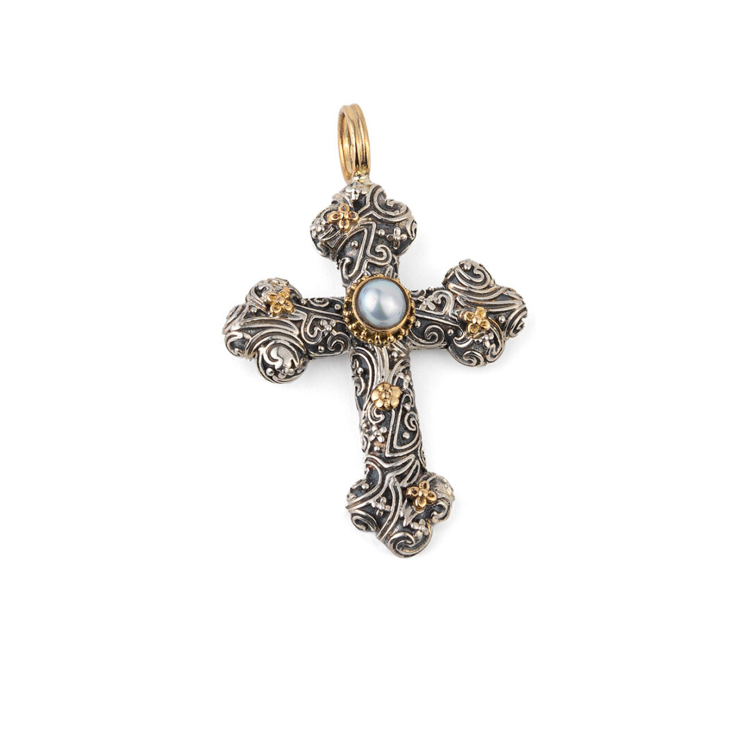 Βυζαντινός Σταυρός με Μαργαριτάρι- 18Κ χρυσό και 925 Ασήμι