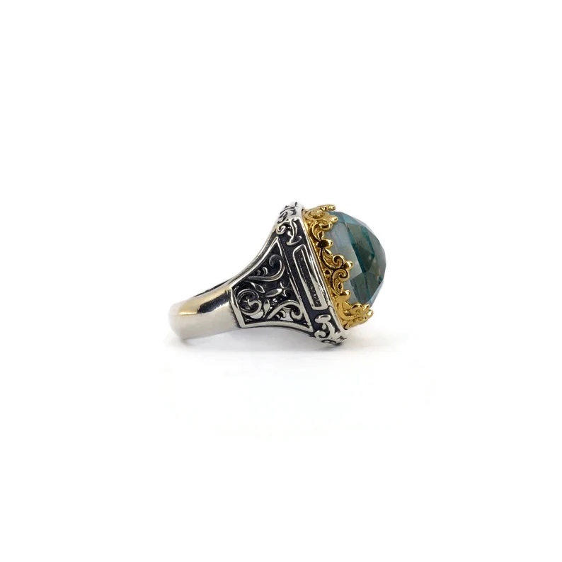 Byzantine Ring with Aquamarine Stone – 925 Sterling Silver Gold Plated