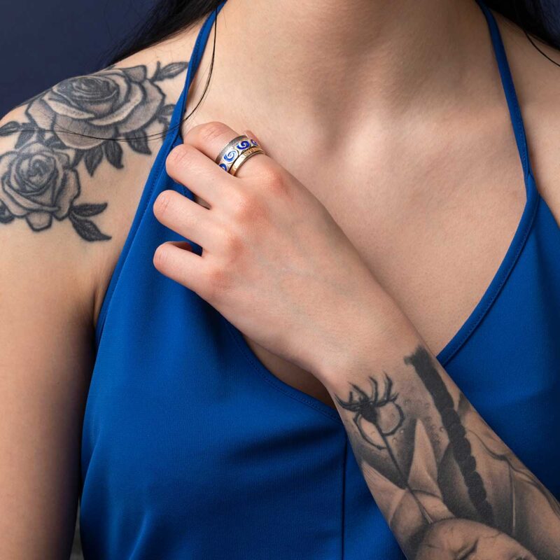Δαχτυλίδι Spinner με Μπλε Σπείρες – Χρυσό 14Κ και Ασήμι 925