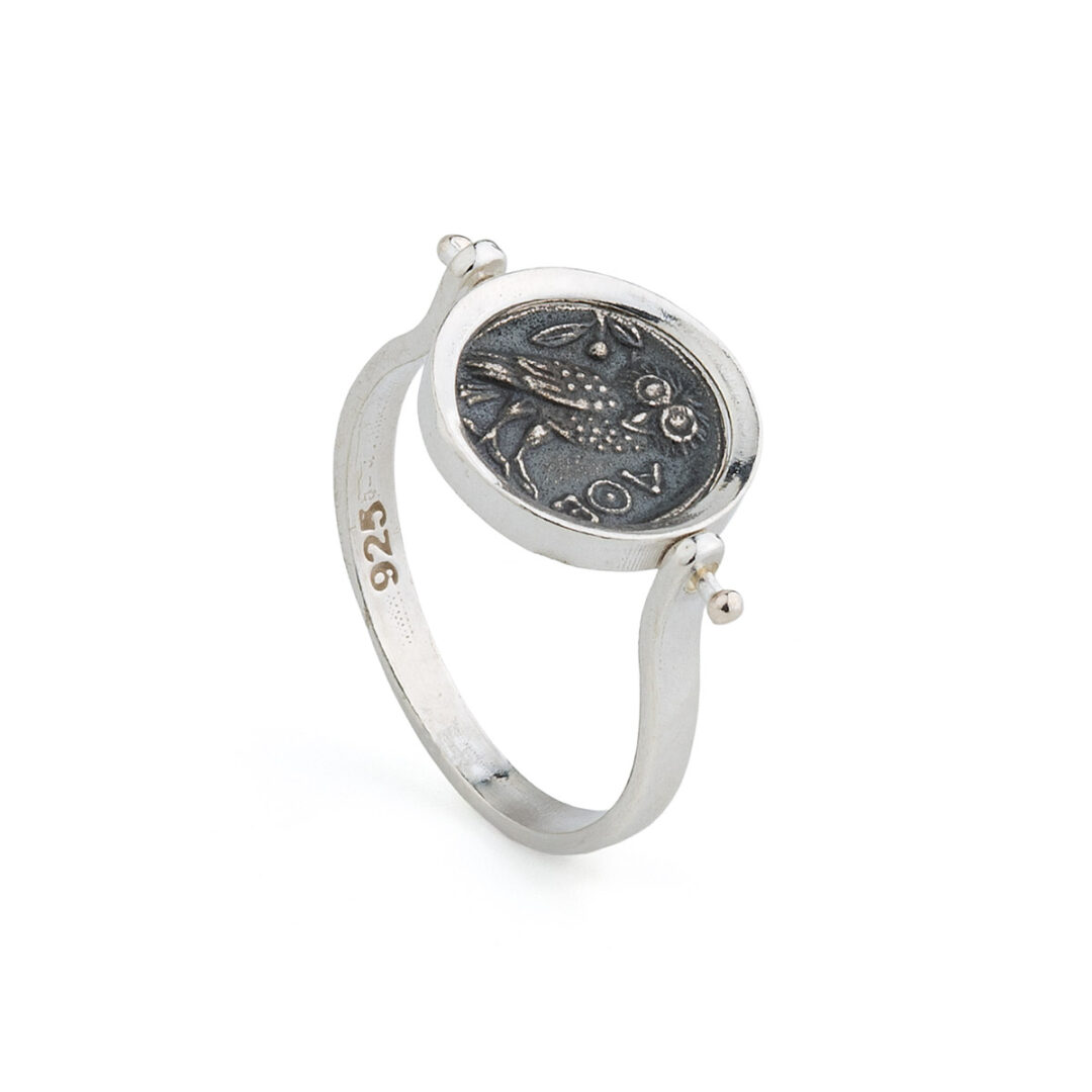 Αυτό το δαχτυλίδι είναι εμπνευσμένο από τα αρχαία ελληνικά κοσμήματα που αντιπροσωπεύουν το σύμβολο της Κουκουβάγιας της Σοφίας.