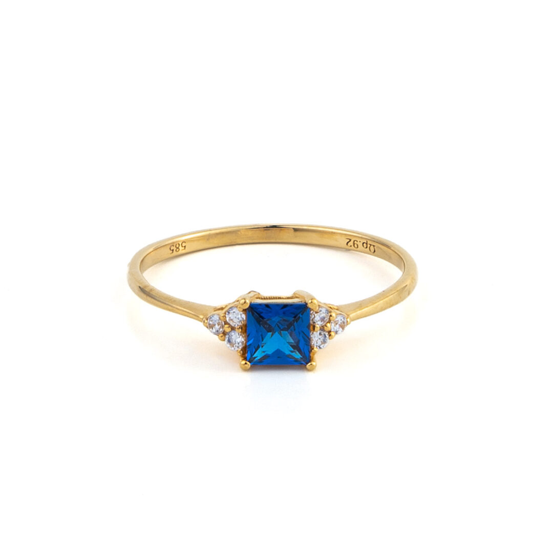 Δαχτυλίδι με Μπλε Πέτρα και Ζιργκόν – 14Κ Χρυσό