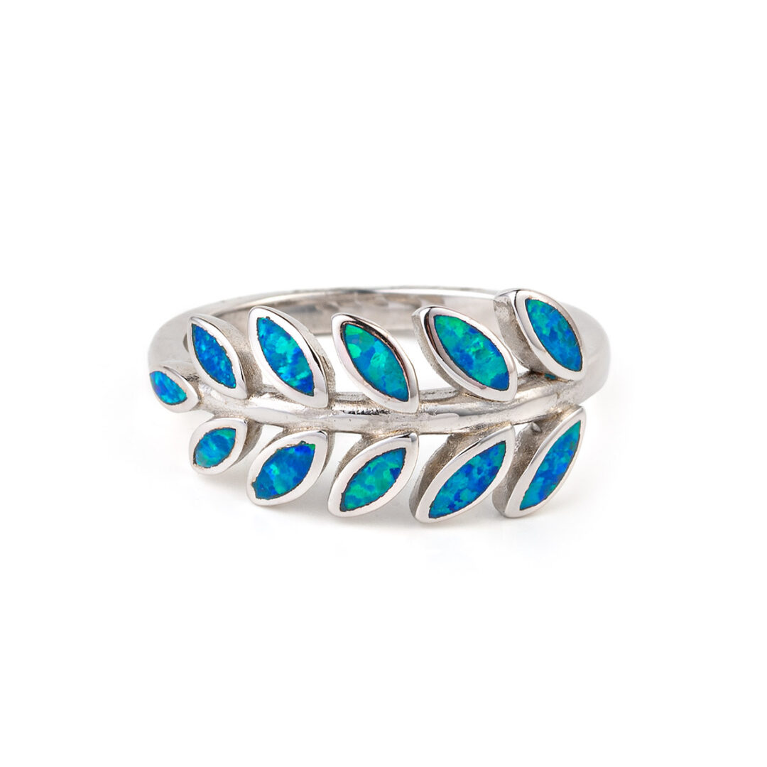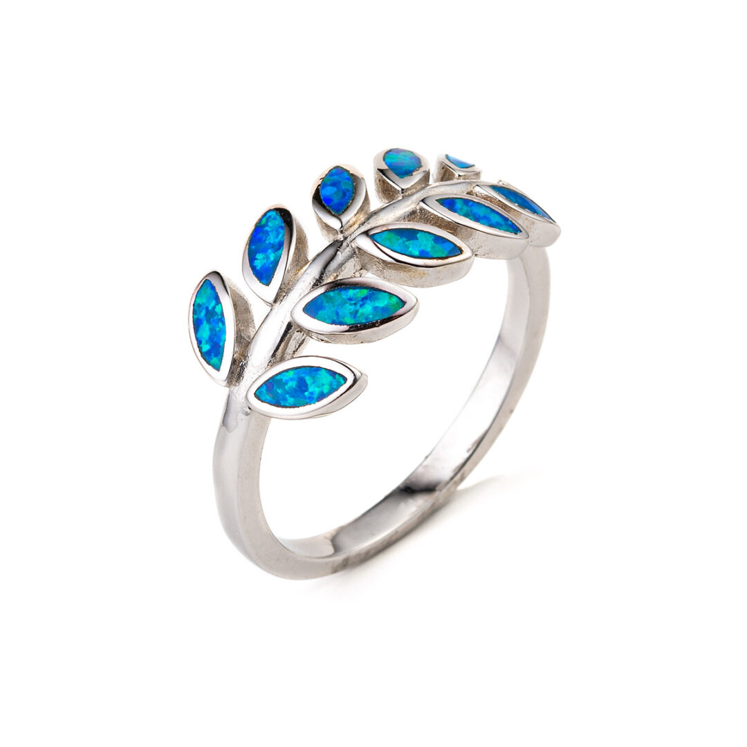 Δαχτυλίδι Φύλλο με Μπλε Οπάλ – Ασήμι 925