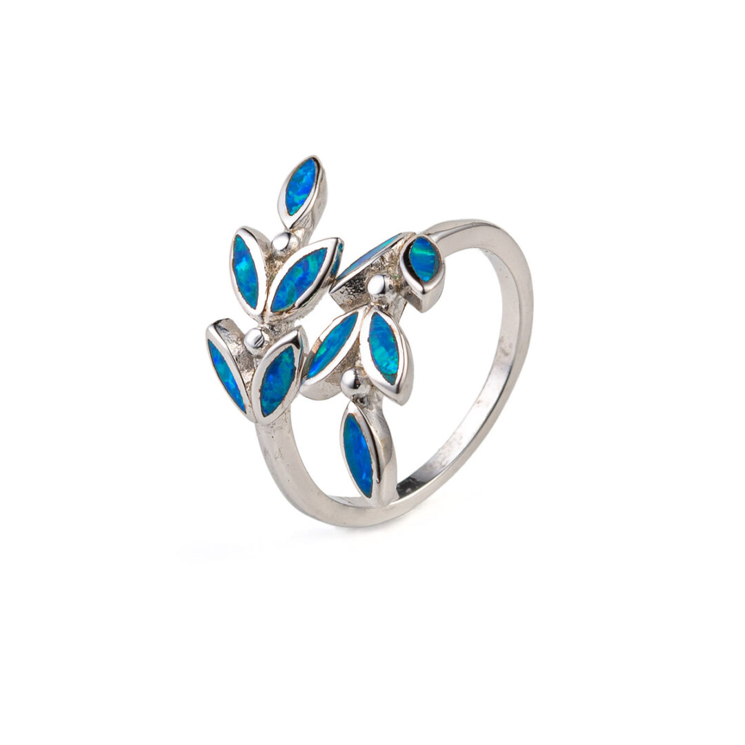 Δαχτυλίδι Φύλλο με Μπλε Οπάλ – Ασήμι 925