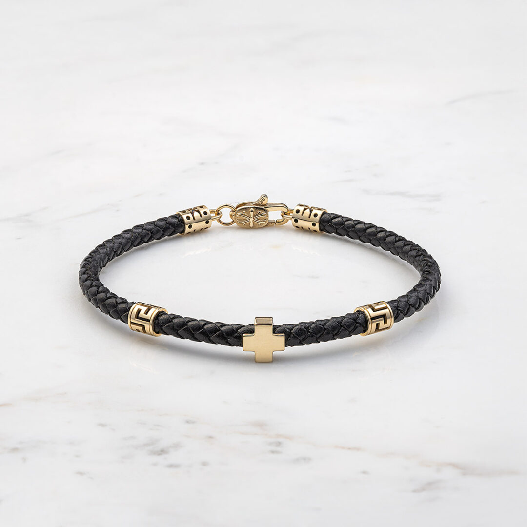 Δερμάτινο Βραχιόλι Από Ασήμι 925 & 14Κ Χρυσό