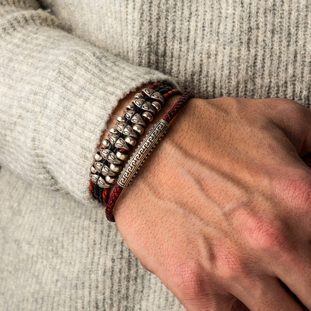 Δερμάτινο Βραχιόλι με Μαίανδρο – Ασήμι 925