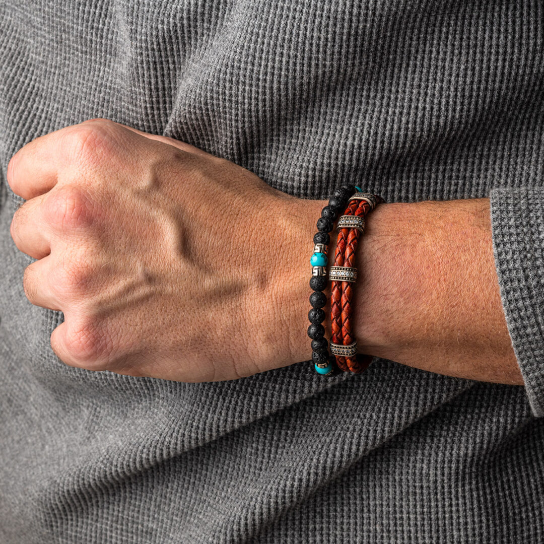 Δερμάτινο Βραχιόλι με Μαίανδρο – Ασήμι 925