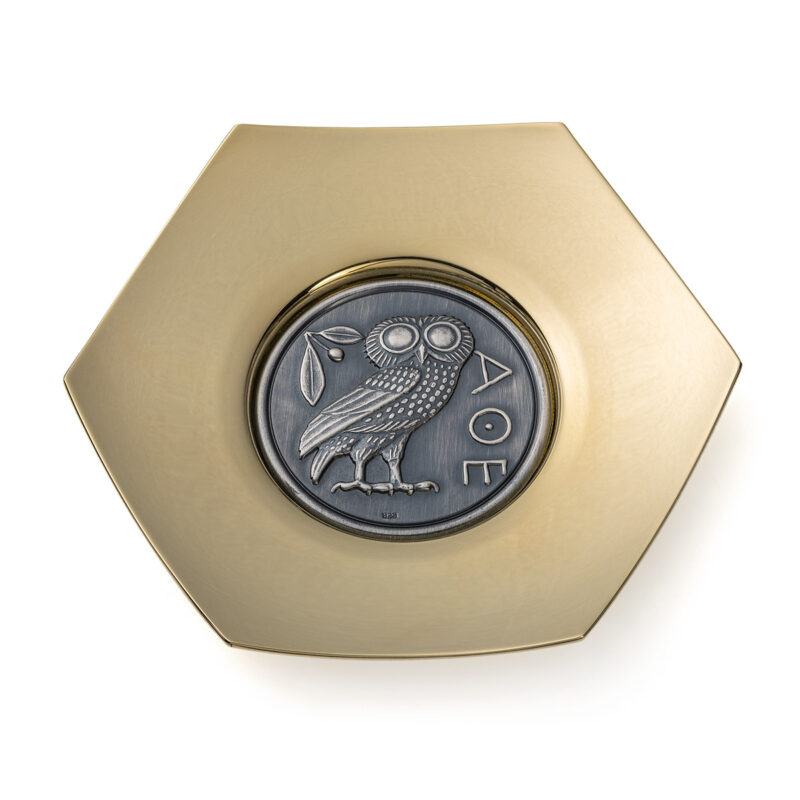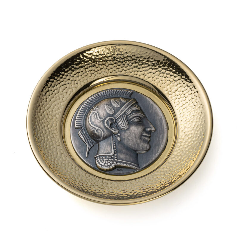 Πιάτο απο χαλκο με παράσταση από ασήμι 925 εμπνευσμένη από αρχαία Ελλάδα.