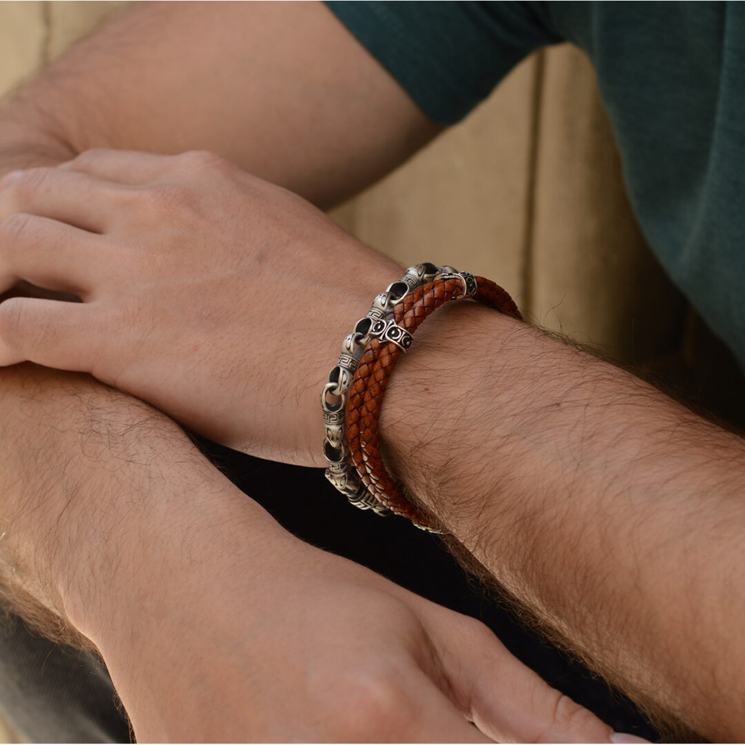 Καφέ Βραχιόλι – Ασήμι 925 και Δέρμα