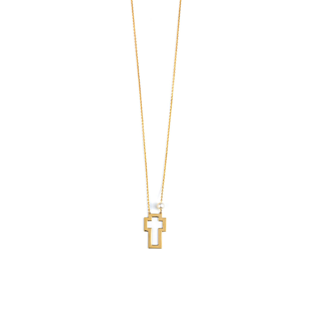 Κολιέ Αλυσίδα από Κίτρινο Χρυσό 14 Καρατίων με Ανοιχτό Σταυρό