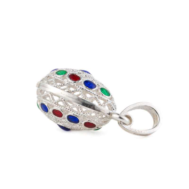 Κατασκευασμένο από επιχρυσωμένο ασήμι 925⁰ και διακοσμημένα με πολύχρωμα ζιργκόν.