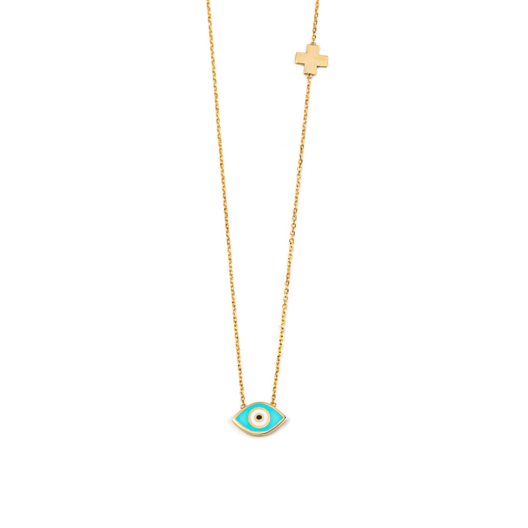 Κολιέ Κίτρινο Χρυσό 14 Καρατίων με Μάτι και Σταυρό