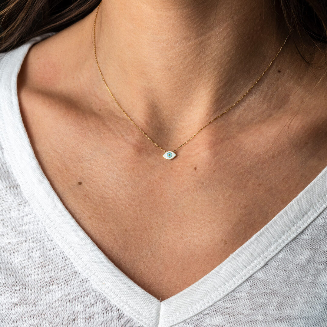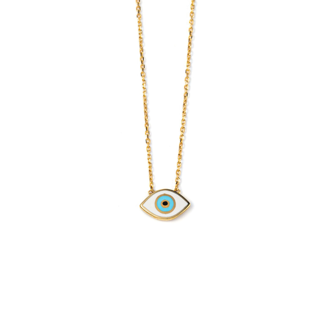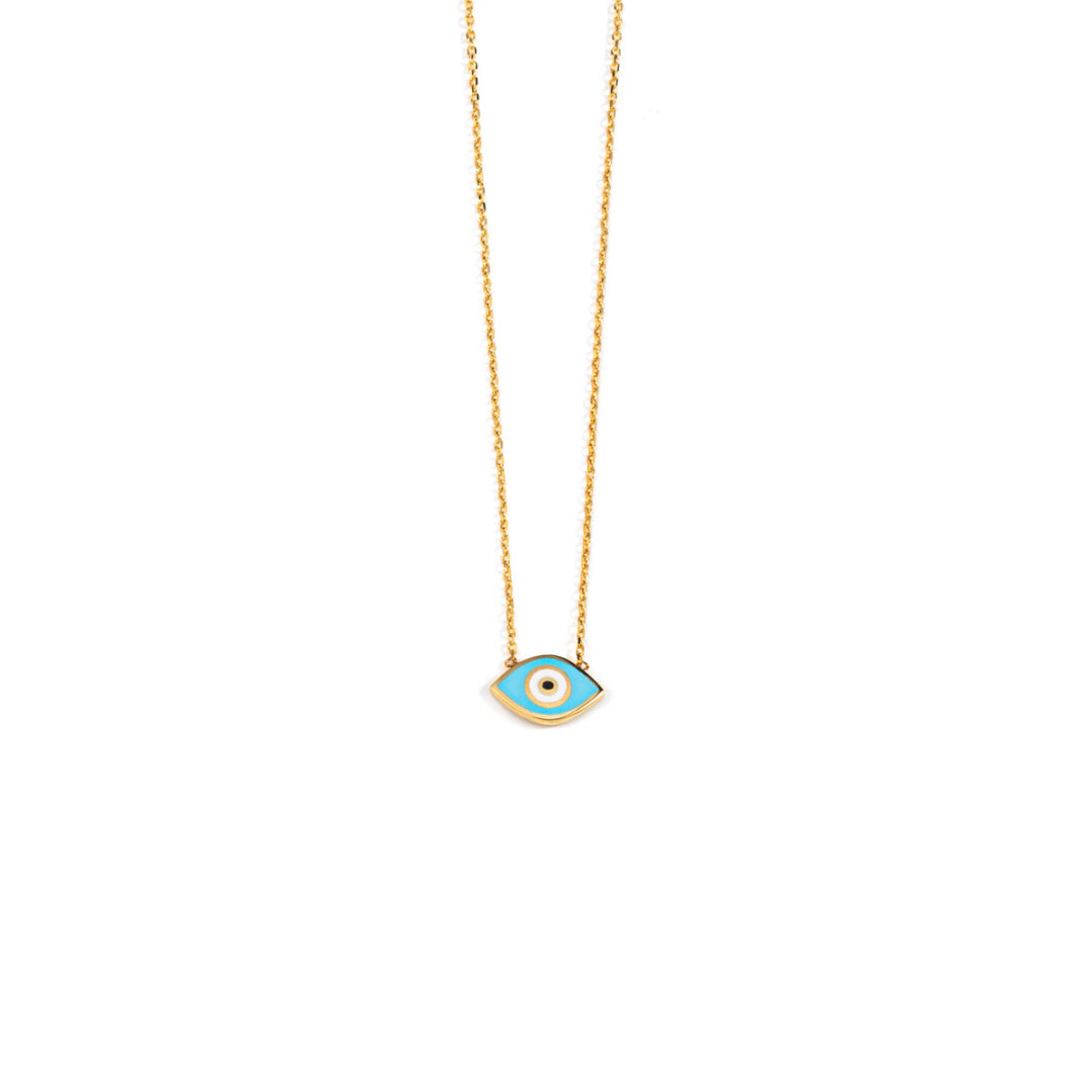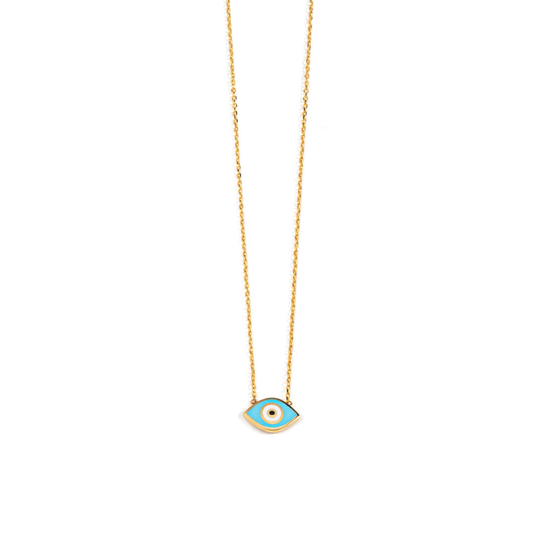 Κολιέ Κίτρινο Χρυσό 14 Καρατίων με Μάτι με Σμάλτο