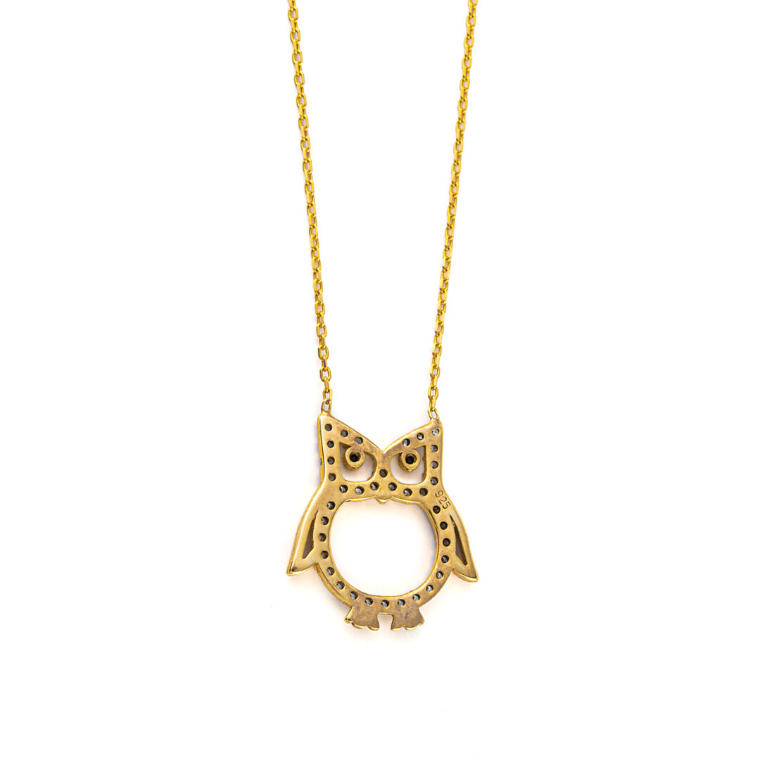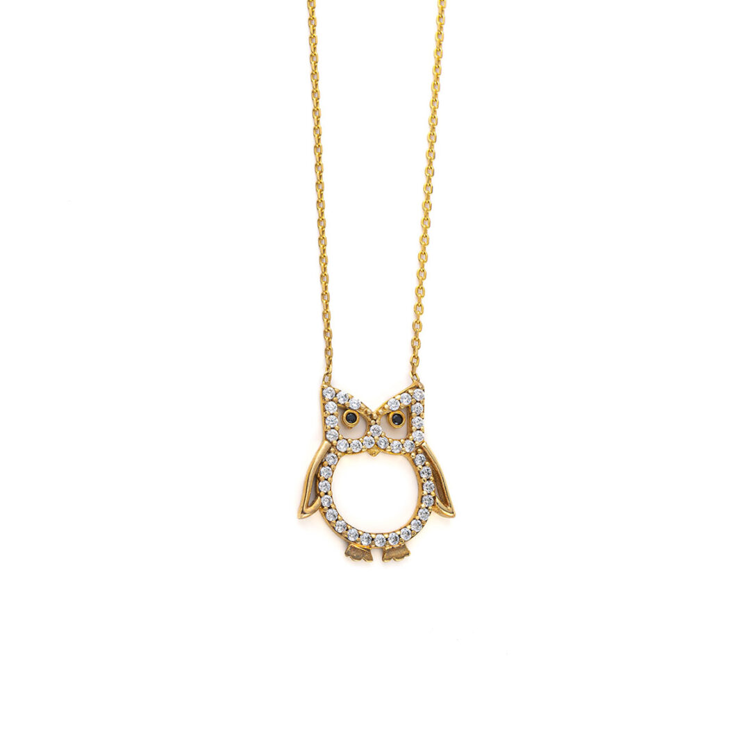Κολιέ Κουκουβάγια – Ασήμι 925 Επιχρυσωμένο με Ζιργκόν