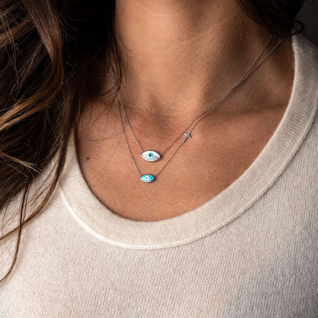 Κολιέ Λευκό Χρυσό Κ9 Μάτι με Σταυρό