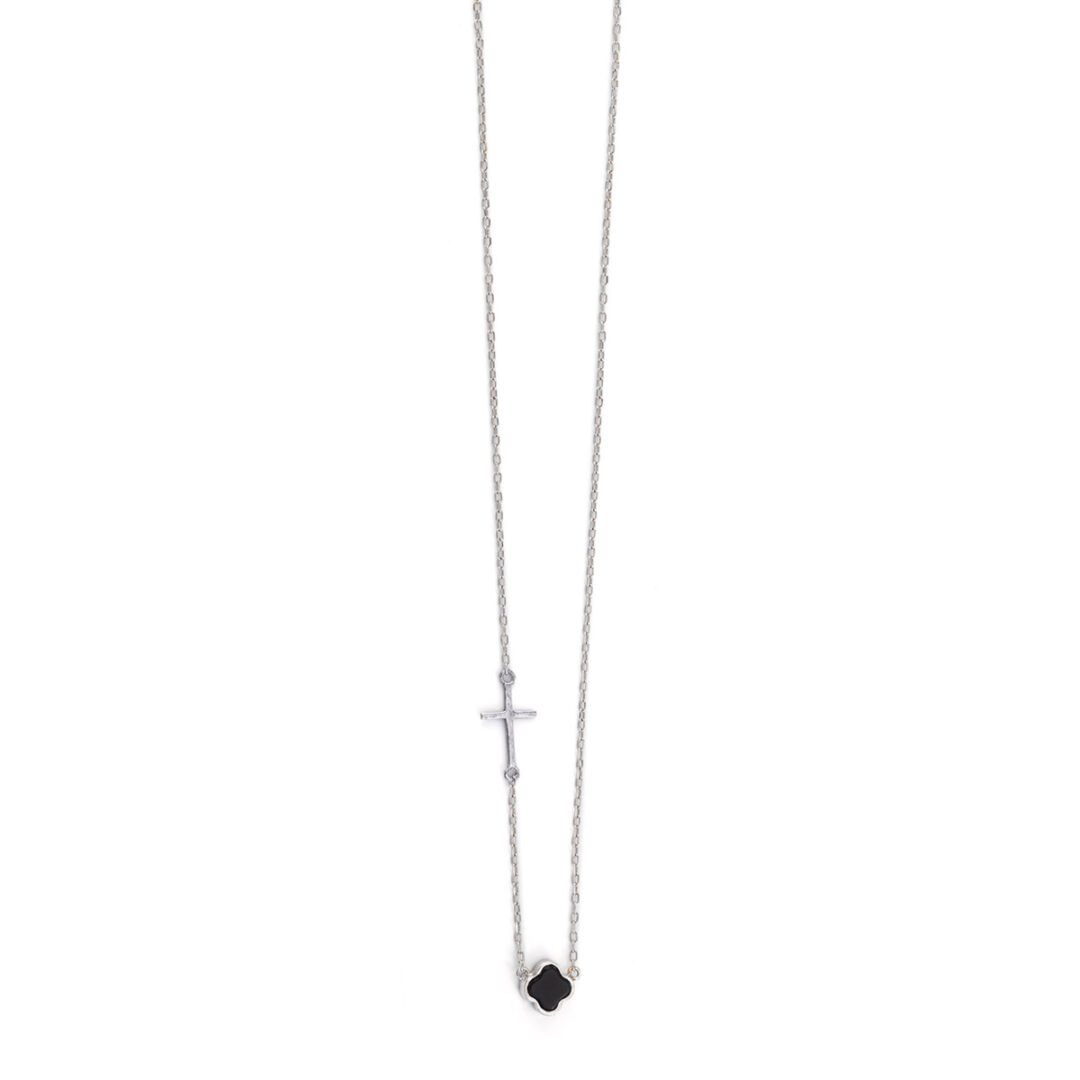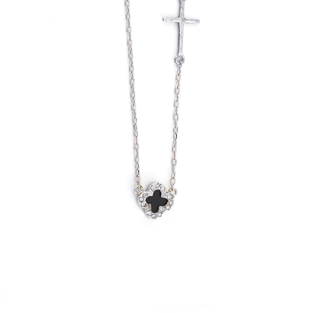 Κολιέ Σταυρος Μαύρος Όνυχας με Άσπρα Ζιργκόν – Χρυσό 14K