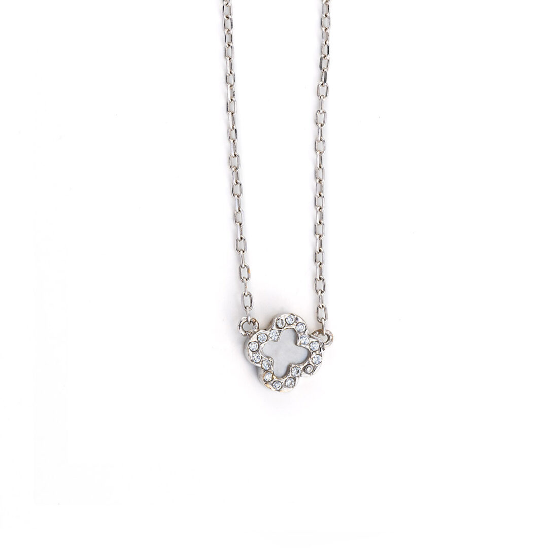 Κολιέ με σταυρό από φίλντισι κατασκευασμένο από χρυσό 14Κ, με λευκές πέτρες ζιργκόν.