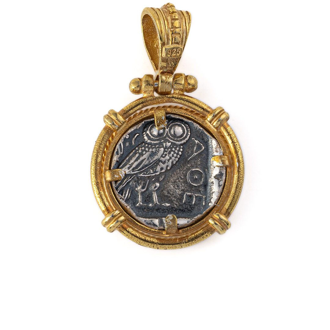 Μενταγιόν Αθηνά και Κουκουβάγια – Ασήμι 925 Επιχρυσωμένο