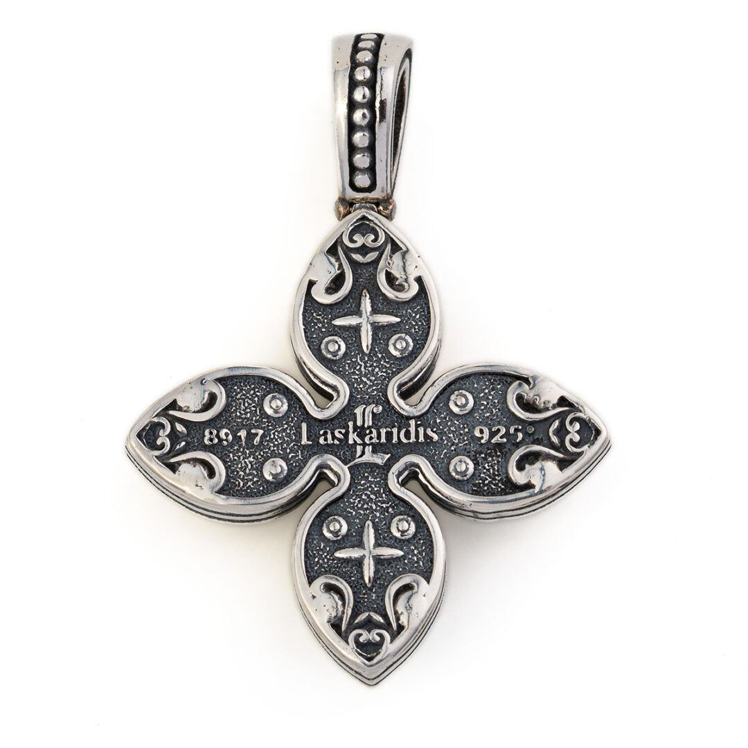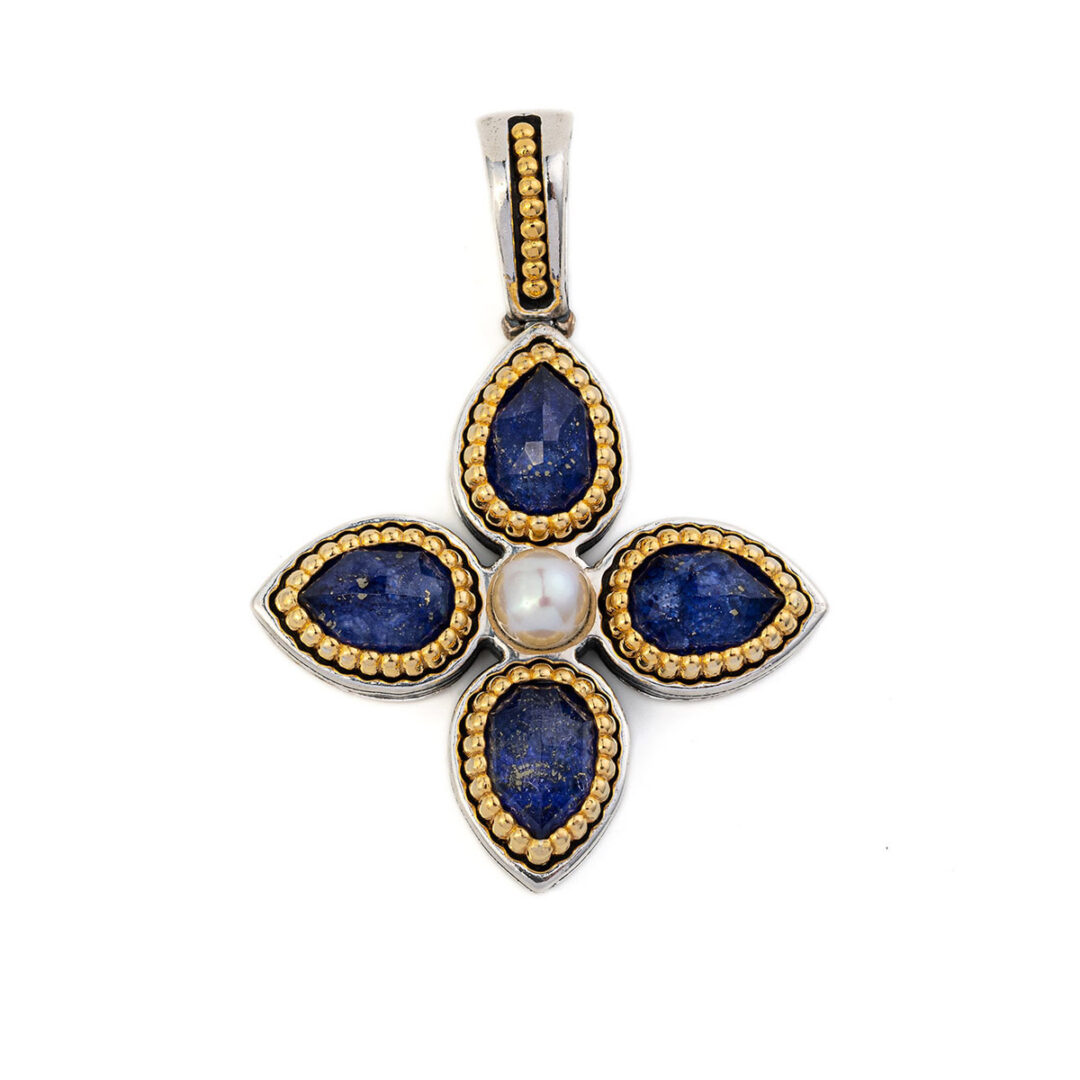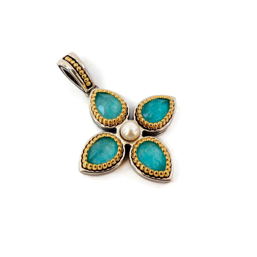 Μενταγιόν Βυζαντινός Σταυρός Turquoise Copper και Πέρλα – Ασήμι 925 Επιχρυσωμένο