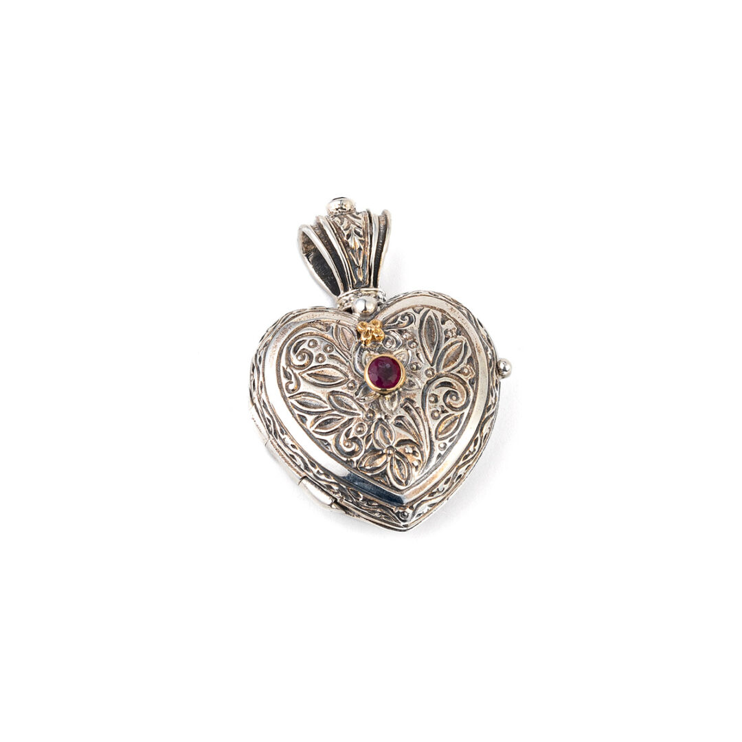 Μενταγιόν Καρδιά από 18Κ κίτρινο χρυσό, ασήμι 925 και ρουμπίνι.