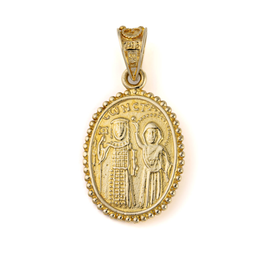 Μενταγιόν Κωνσταντινάτο Οβάλ με Τυρκουάζ – 14Κ Χρυσό