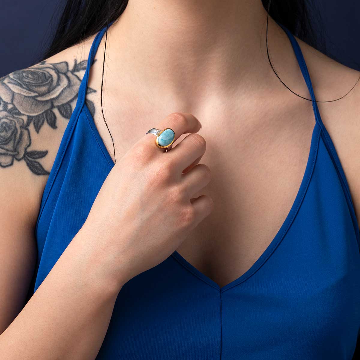 Οβάλ Δαχτυλίδι Larimar – Ασήμι 925 Επιχρυσωμένο
