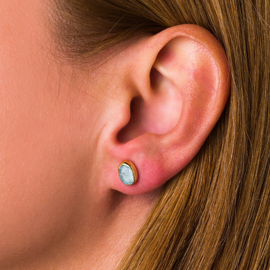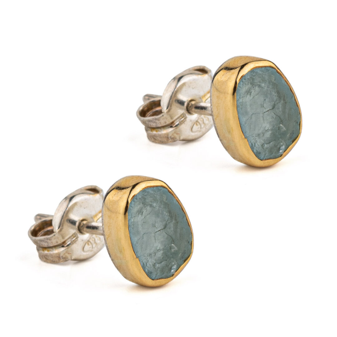 Σκουλαρίκια Καρφωτά Aqua Marine – 18Κ Χρυσό και Ασήμι 925