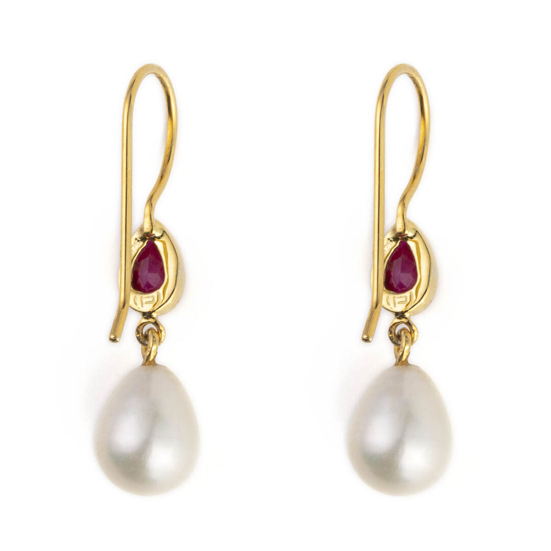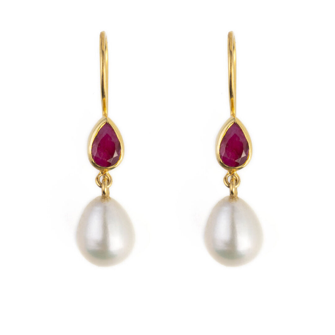 Σκουλαρίκια Κρεμαστά Ρουμπινίτης και Μαργαριτάρι- Ασήμι 925 Επιχρυσωμένο