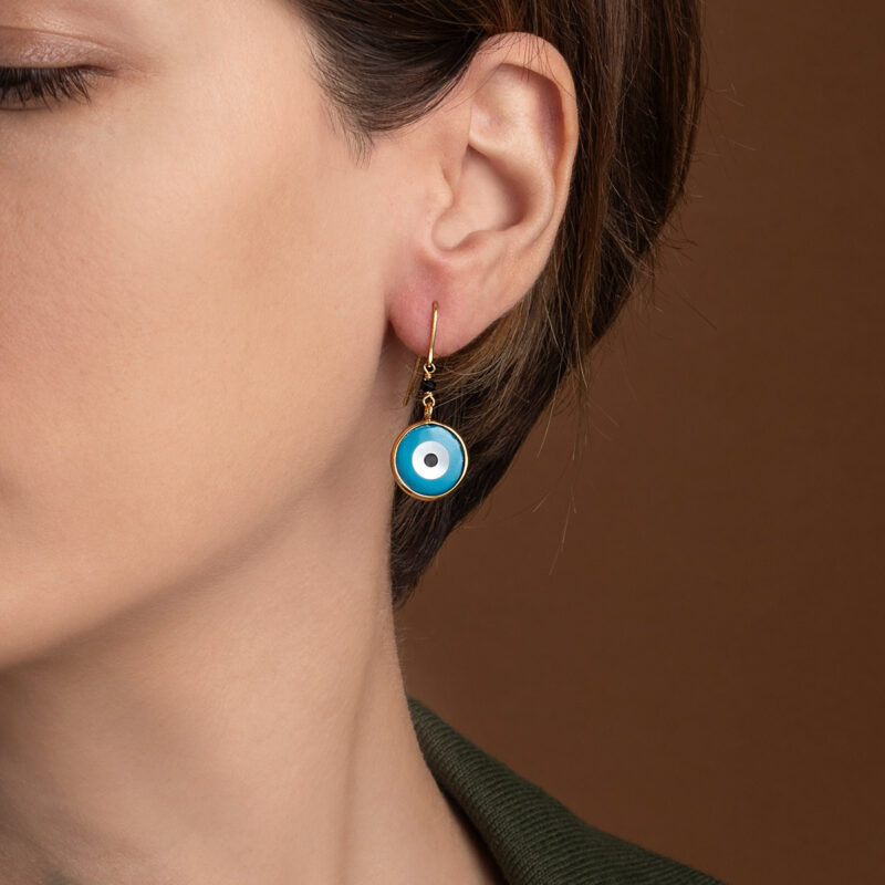 Ασημένια σκουλαρίκια επιχρυσωμένα με ματάκι