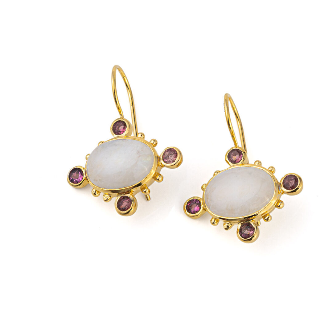 Σκουλαρίκια με Φεγγαρόπετρα και Τουρμαλίνη – Ασήμι 925 επιχρυσωμένα