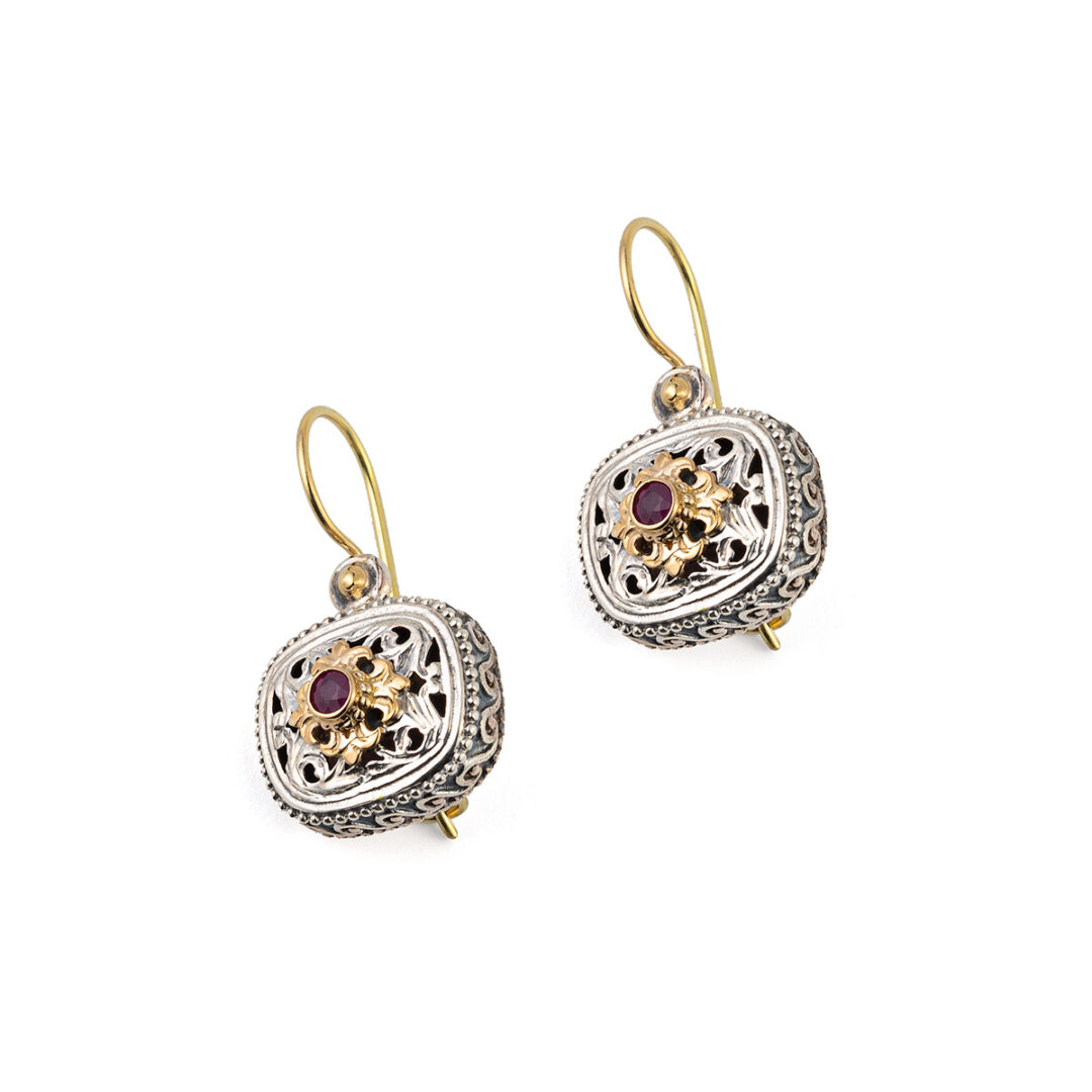 Σκουλαρίκια απο Ασήμι 925 και 18Κ χρυσό με Ρουμπίνι.