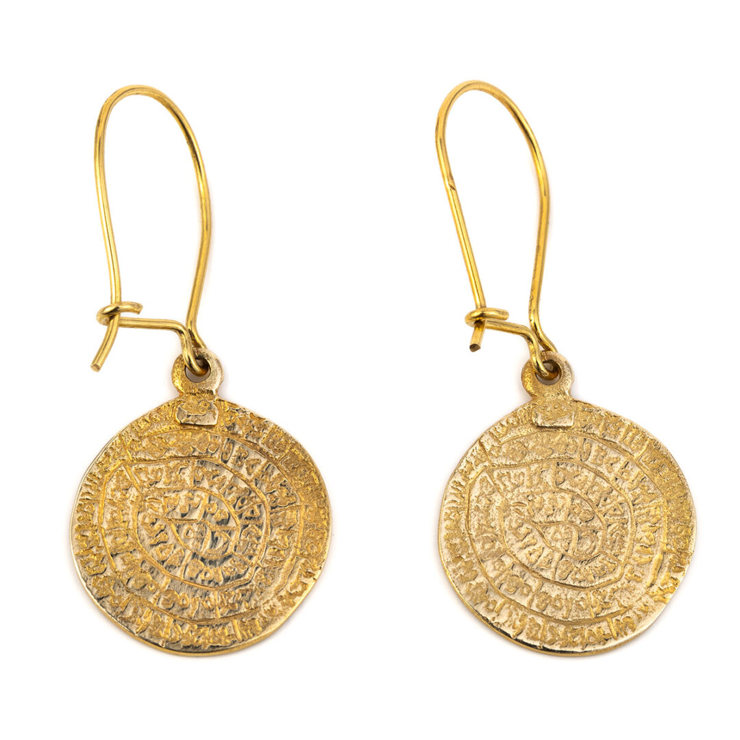 Σκουλαρίκια Κρεμαστά με Δίσκο της Φαιστού – Χρυσό 14Κ