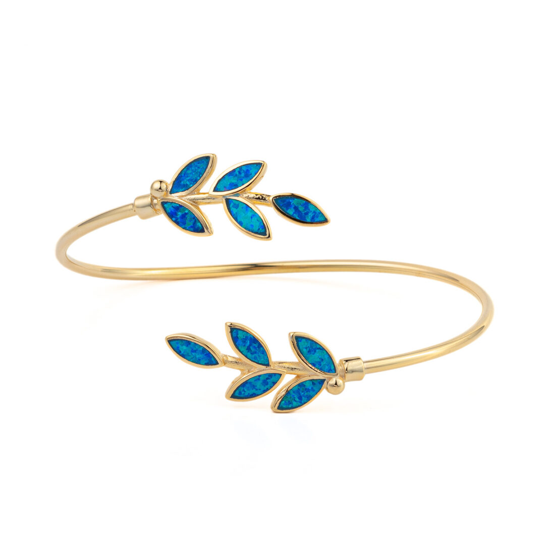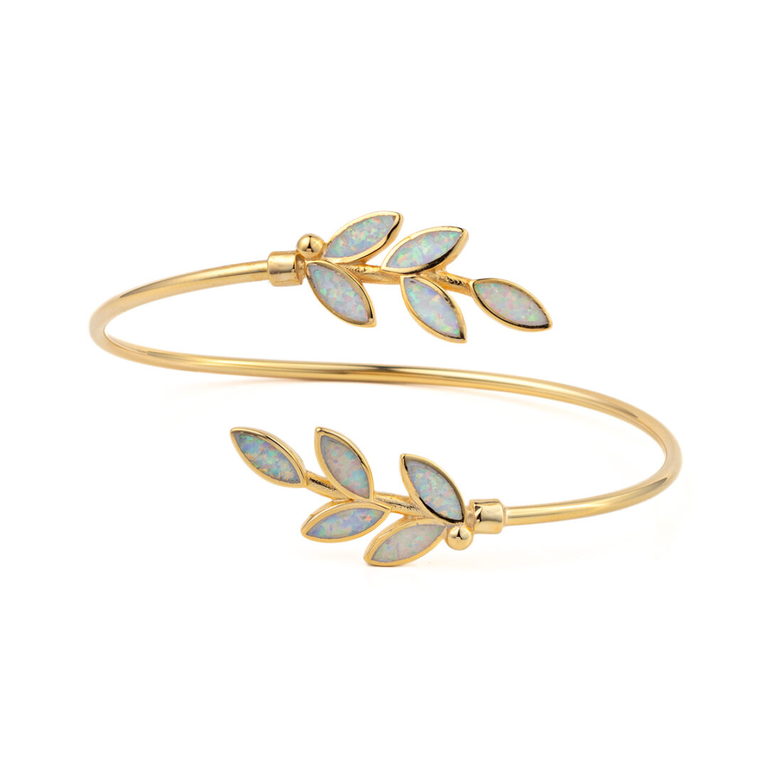 Βραχιόλι με Όπαλ Φύλλα Ελιάς – Επιχρυσωμένο Ασήμι 925